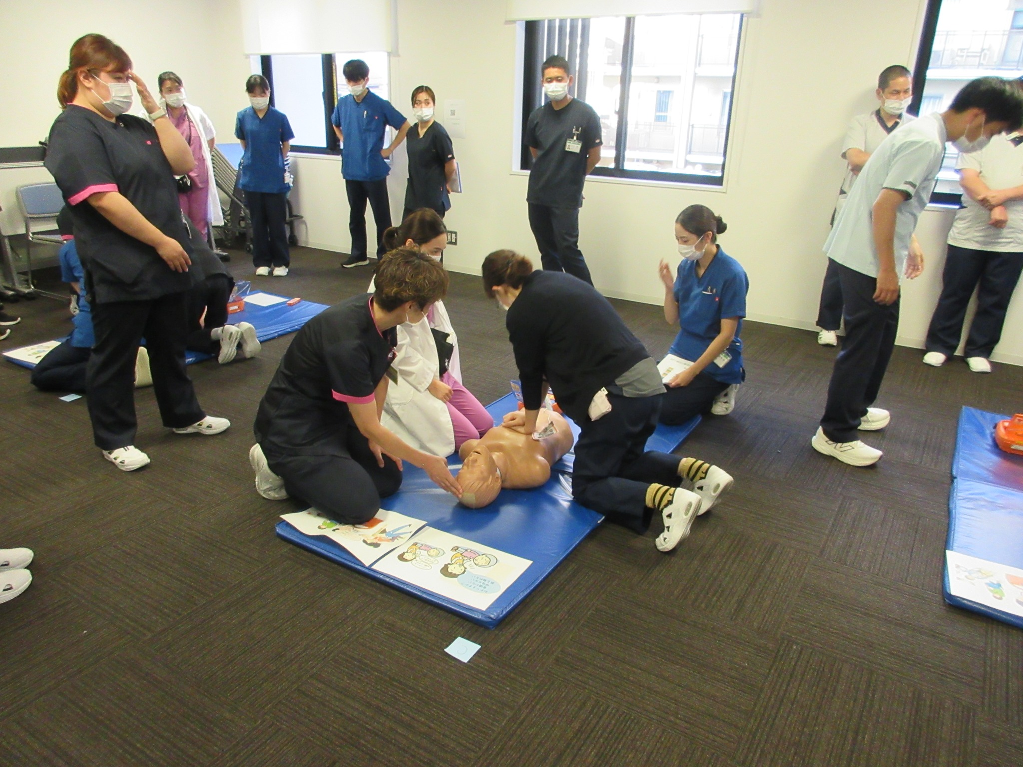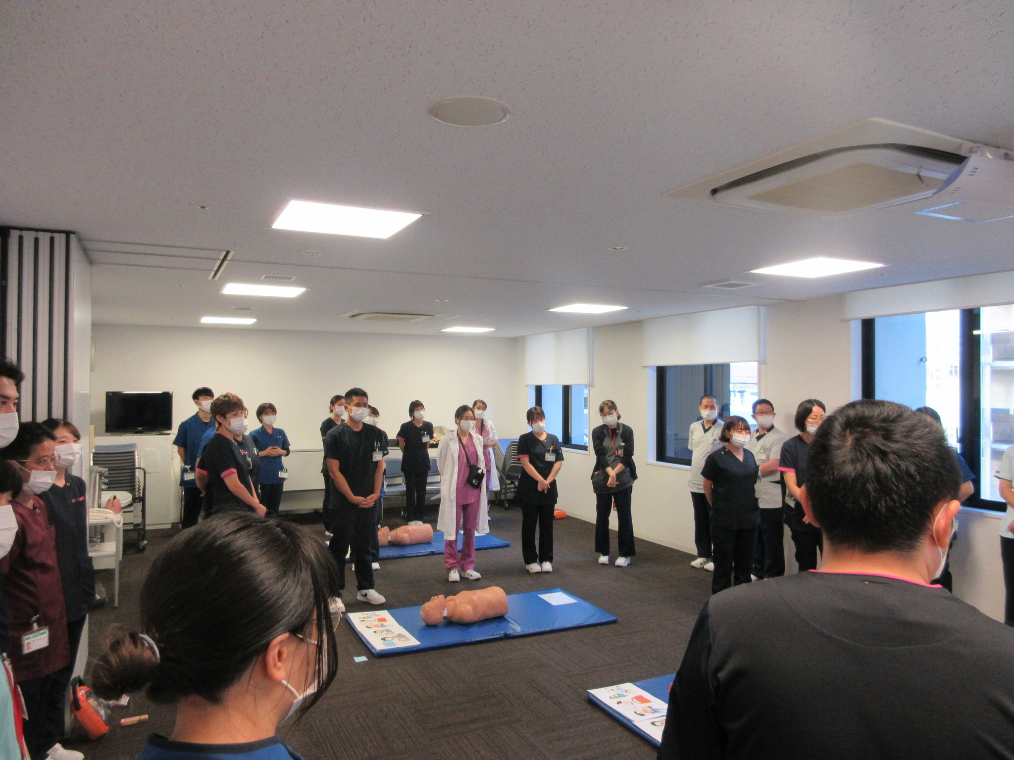8月4日から全職員を対象にBLS(一次救命処置)研修を全7回にわたり実施しています。これは職種を問わず、急変患者を発見した際に、迅速かつ正確な行動がとれることを目的とした取り組みです。